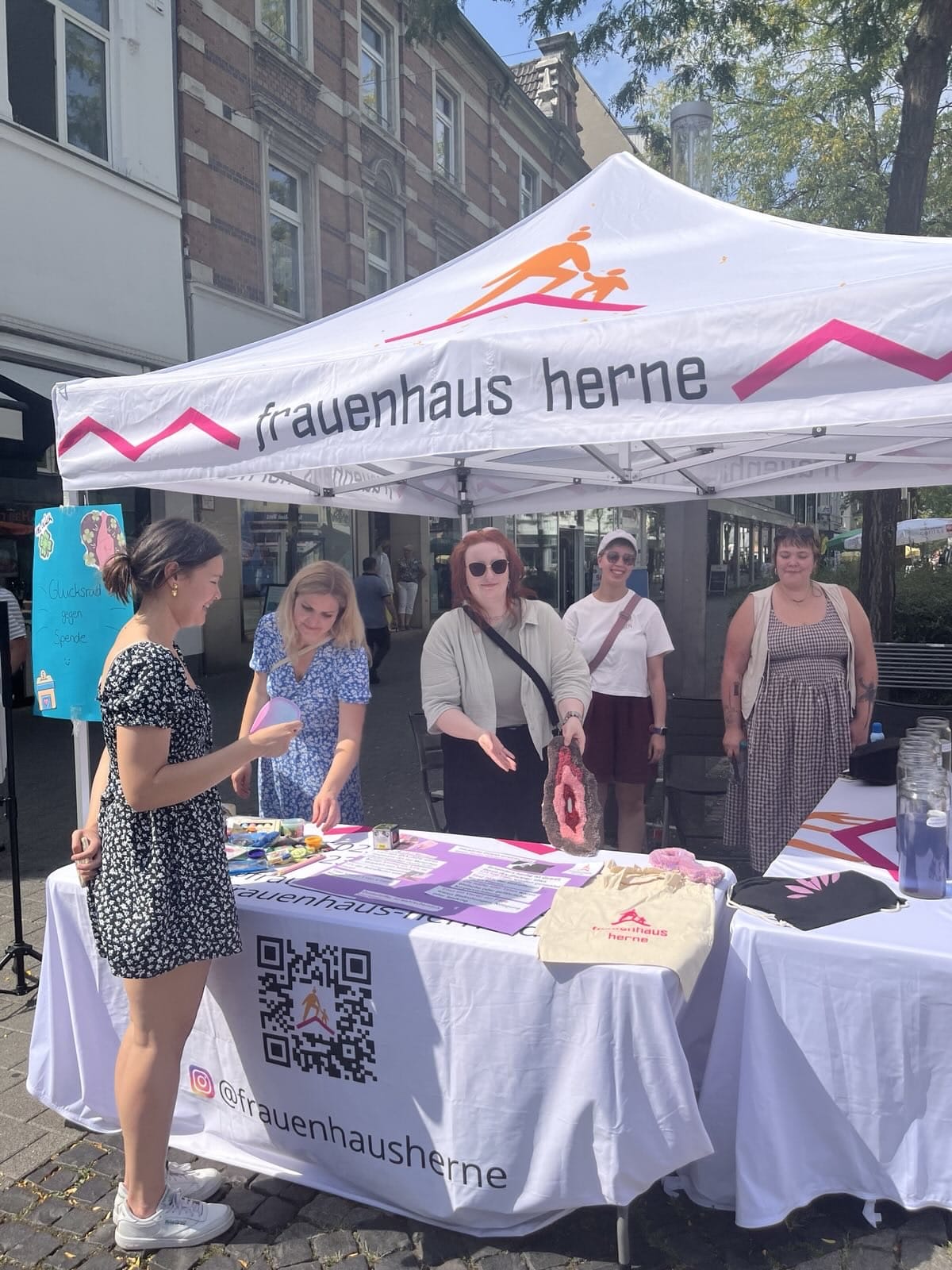 Gemeinsam mit vielen anderen sozialen Einrichtungen haben wir in der Herner Innenstadt Infostände aufgebaut. Interessierte konnten sich über das Thema Hilfen für Betroffene von häuslicher Gewalt informieren, oder eine der Mitmach-Aktionen ausprobieren.