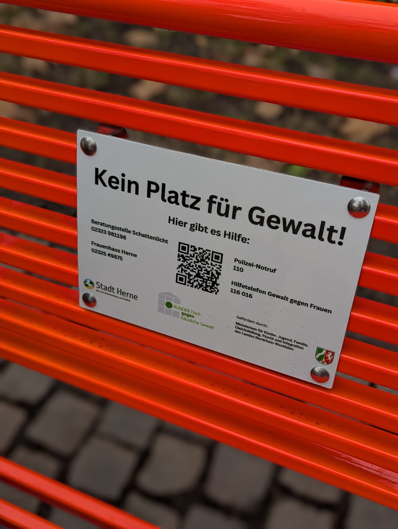 Das Projekt der orangenen Bänke wurde von dem Büro für Gleichstellung und Vielfalt initiiert und wir als Frauenhaus freuen uns sehr, dass auf das Thema aufmerksam gemacht wird.