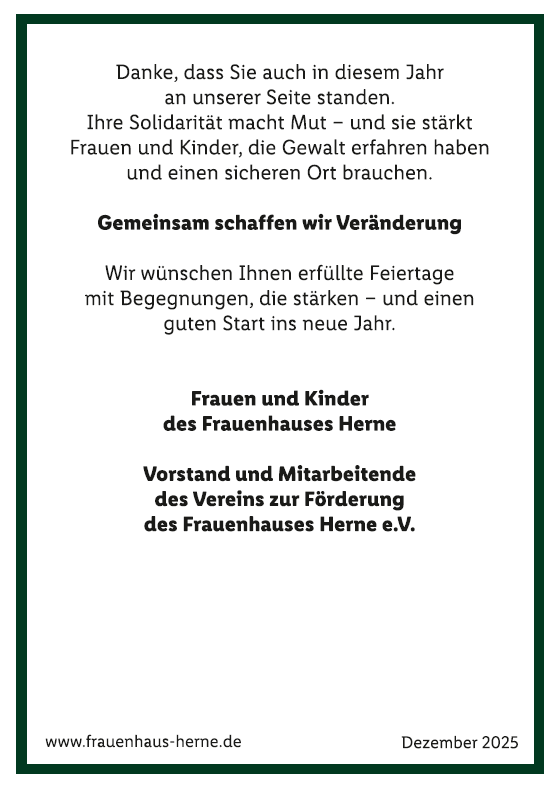 Das Frauenhaus Herne ist, drei Jahre nach dem Umzug in das neue Haus, gut am neuen Standort angekommen und sehr zufrieden den gewaltbetroffenen Frauen und Kindern ein einladendes und hochwertiges “Zuhause auf Zeit “ anbieten zu können. Weiterhin gibt es zu viele Anfragen für die vorhandenen Plätze und das Haus ist ständig voll belegt.